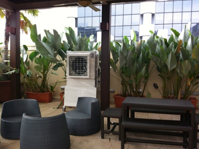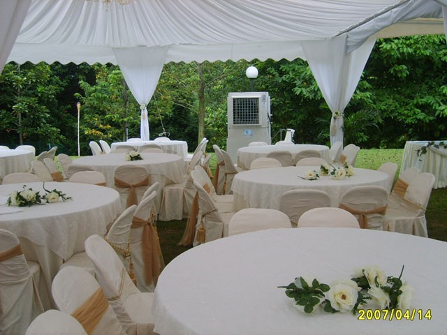 Evaporative air cooler is simple to use, produces natural cooling through the process of evaporation, by drawing fresh air through moist pads. It is perfect for cooling large outdoor and indoor spaces on hot days, such as weddings, roadshows, exhibitions, large tents, and even private parties.