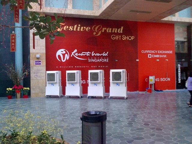 It has been used in Singapore for years as a more efficient and cost effective option to air conditioner. It needs only tap water and 13amp power points to operate. No mist (just cool air), cool air to an average of 26°C to 28°C. Dual water fill options (manual fill and hose connection).